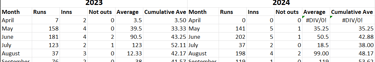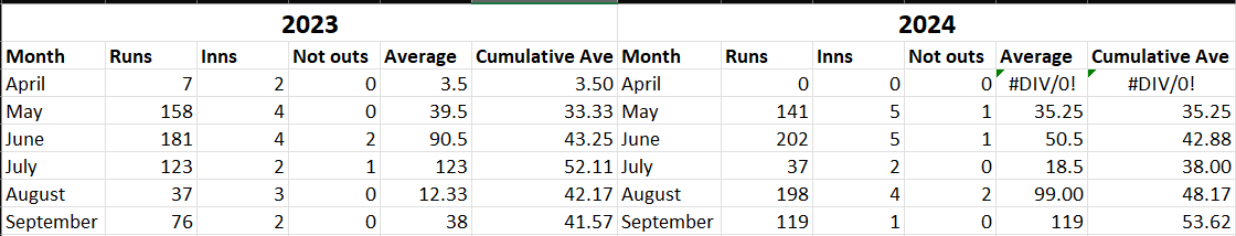 At the start of the season, I checked our club records to see how many runs I needed to pass Nigel Jones as our highest run scorer: 1260. Last season, I scored 582 runs, so using that as a guide I thought I’d stretch myself by aiming for 650 each season for the next two.
